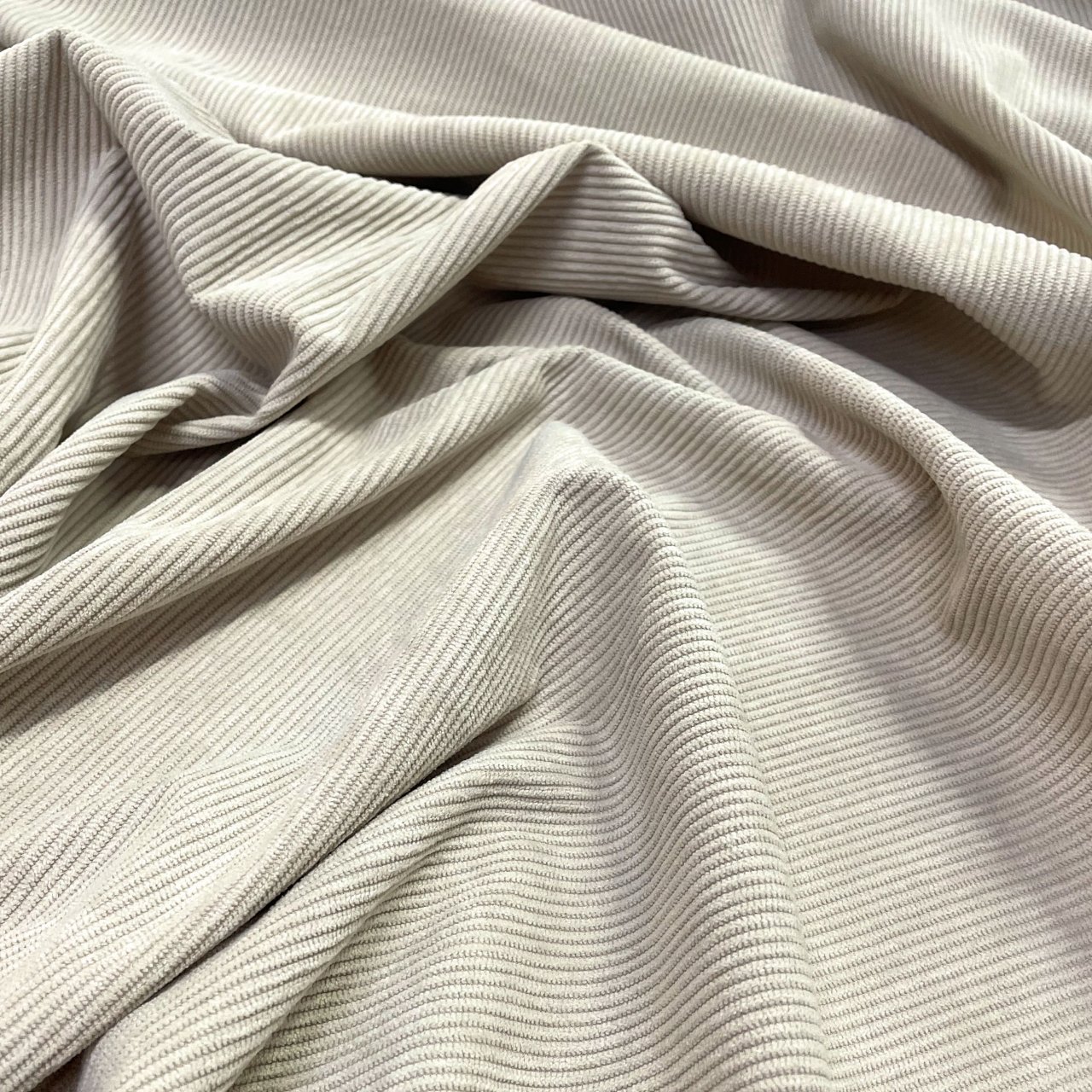 Плотный, и в то же время приятный материал с матовым блеском по лицевой стороне и нежной бархатистой поверхностью. На лицевой стороне классический ворс, создающий фактуру в полоску. Хорошая плотность ткани обеспечивает ее высокую износостойкость. Вещи из вельвета всегда актуальны, удобны в носке и не мнутся. Ткань прекрасно подходит для пошива свитшотов, платьев, юбок, а также спортивных костюмов.